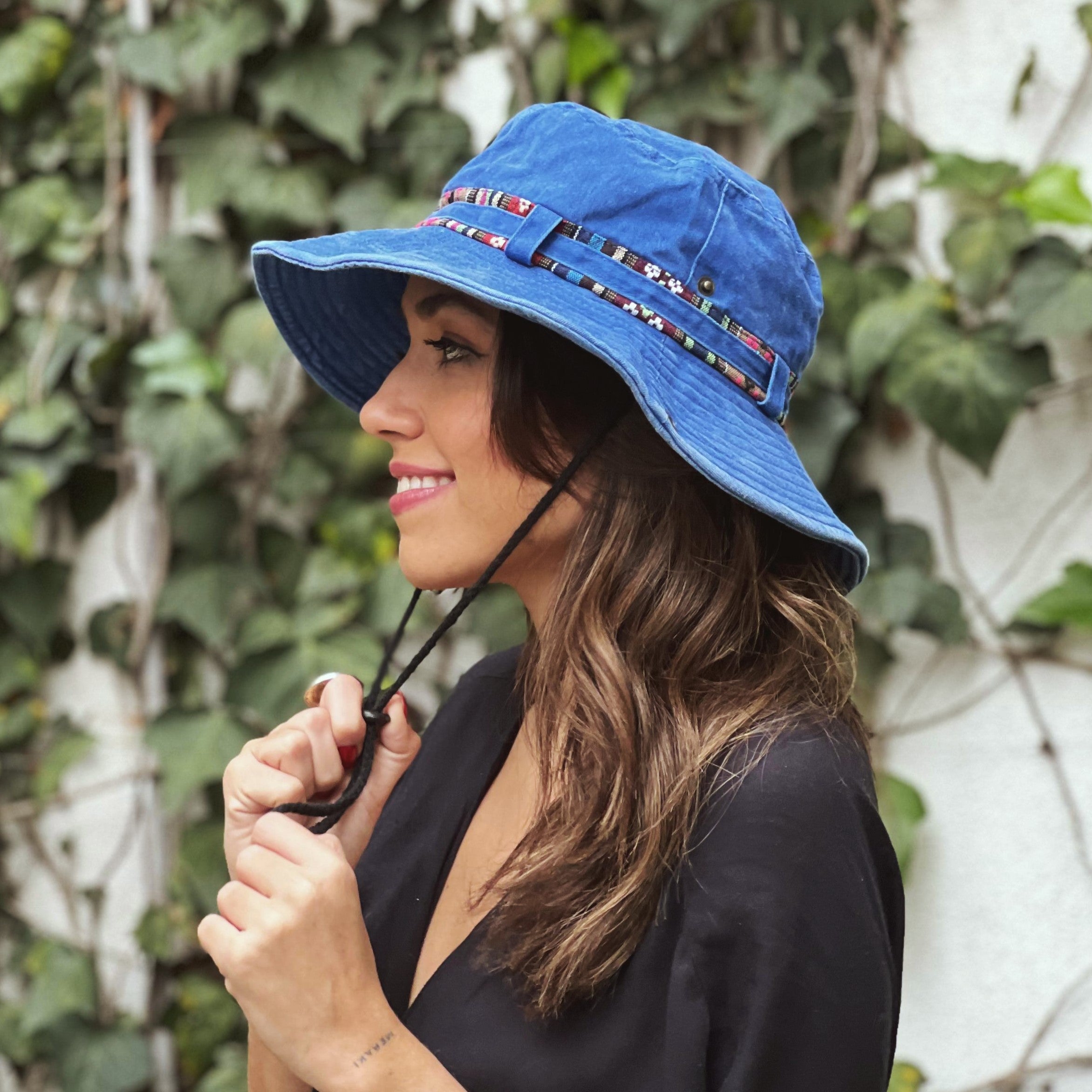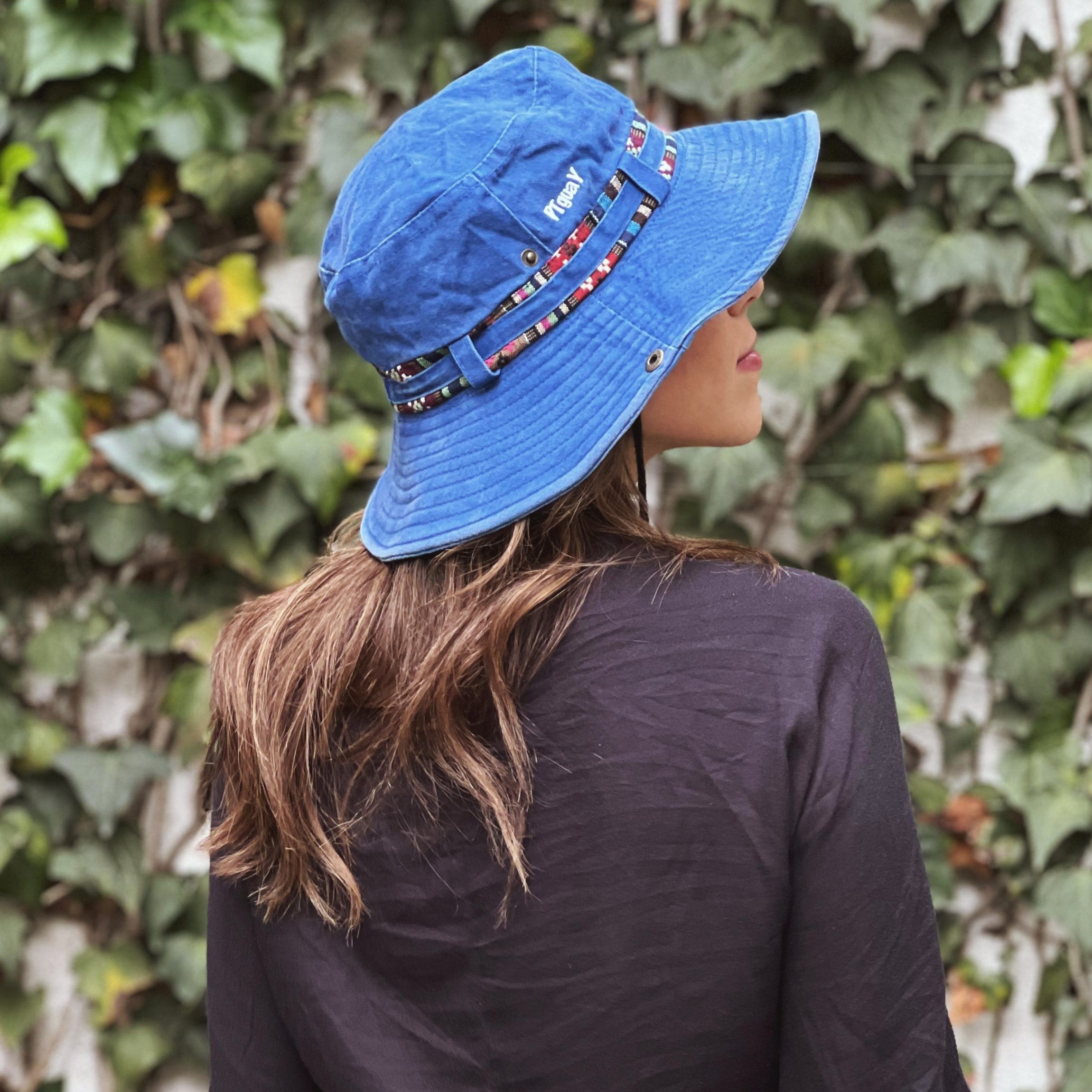 Bucket Hat estilo étnico desgastado color azul edición limitada.