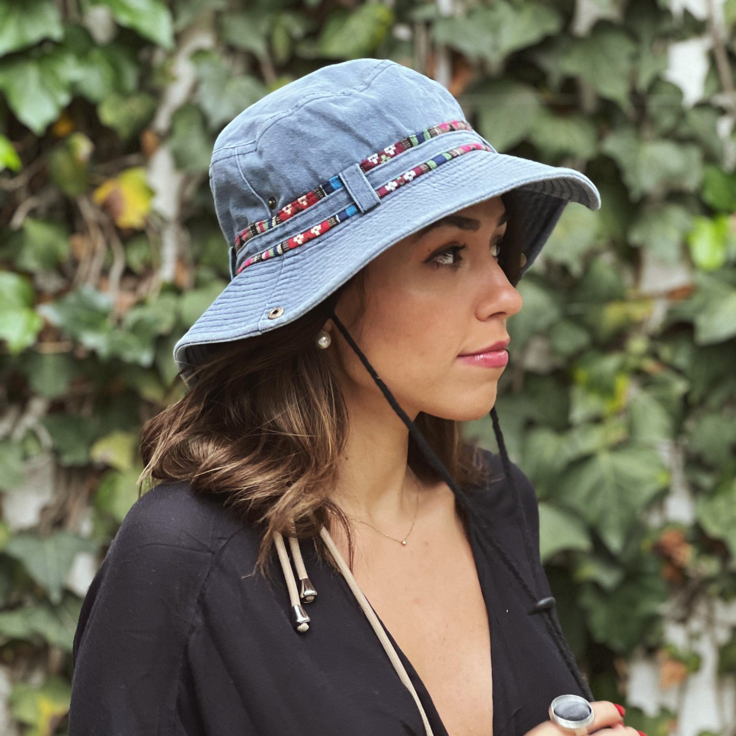 Bucket Hat estilo étnico desgastado color azul claro edición limitada.