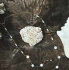Las Perlas está diseñado con una cadena color dorado y piedrecitas tipo perlas - nácar.