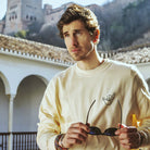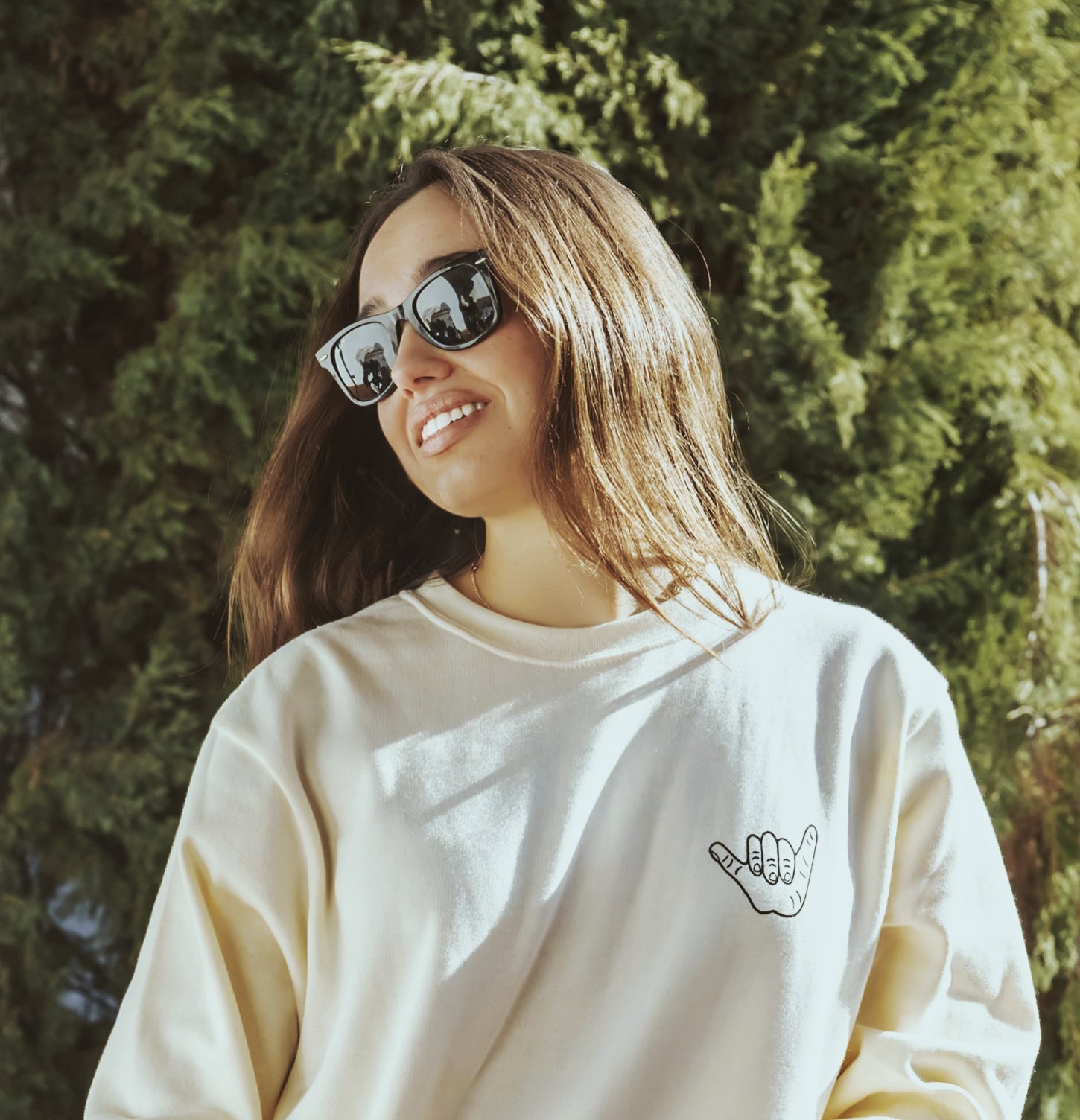 Nuestras sudaderas están hechas de 100% algodón, confeccionadas a mano, de cuello redondo, de manga larga y el tejido es duradero. Las sudaderas en su interior tienen una especie de felpa/borreguito lo que hace una sensación más agradable cuando te la pones. En la parte inferior de la sudadera, tiene dos pequeñas aberturas en los laterales, dando un estilo más suelto. Cuentan con una pequeña etiqueta cosida en la parte inferior derecha de la sudadera, con el nombre de la marca.