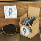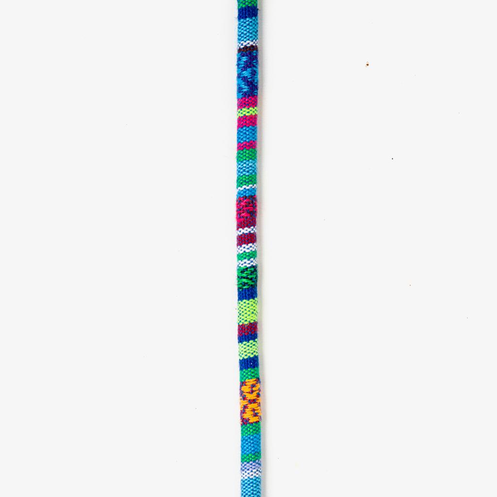 Nuestros cuelgalentes étnicos están hechos a mano de hilo con una terminación en color plata y unas gomas elásticas que permiten ajustar el cuelgalentes a cualquier tipo de varilla. Además, cuenta con un distintivo de plata con el nombre de la marca.