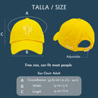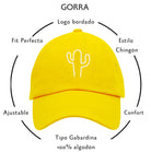 Nuestra gorra de la colección Cactus color amarillo, está diseñada con dos bordados en color blanco. El primero es la silueta de un cactus en el centro y el segundo es el nombre de la marca en la parte trasera del lado izquierdo y en pequeño.