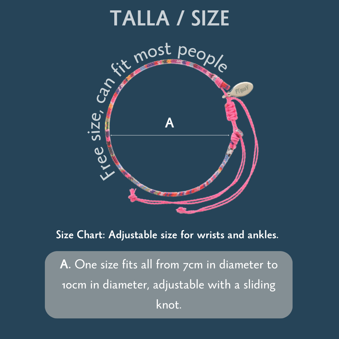 Las pulseras tejidas tienen cierres deslizantes que se adaptan a cualquier tamaño de muñeca o tobillo. No aprietan ni molestan. ¡Listas para la aventura!