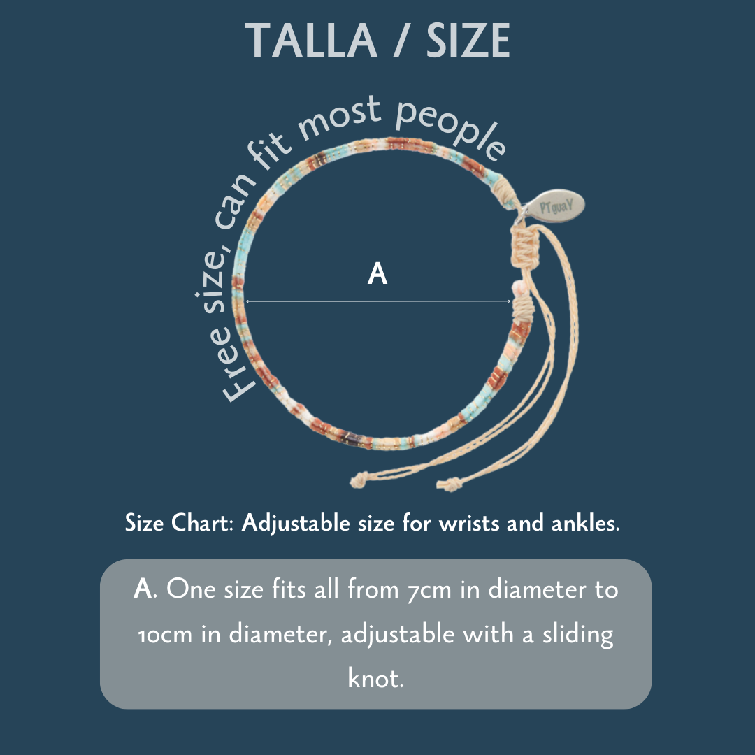 Nuestras pulseras étnicas PTguaY, por lo general, son adecuadas para las muñecas y tobillos de los hombres, así como para los tobillos de las mujeres. Estas pulseras son resistentes al agua, una vez que te las pongas, átalas fuerte con varios nudos y te durarán hasta el día que las quieras cortar.